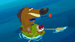 Marina träumt davon, Stewardess zu sein. Also organisiert Sharko ein Flugzeug und spielt den Kapitän. / Ein Schiffbrüchiger hört Marinas Gesang und will nur noch zu ihr schwimmen. / Ein Tunnel unter dem Meer könnte Zig helfen, endlich an Marina heranzukommen
