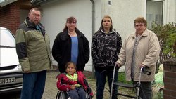 Als 1984 Bertolds und Christels erster Sohn Thorsten geboren wird, scheint das Glück des Ehepaares perfekt. Die junge Familie will sich im Elternhaus von Christel eine gemeinsame Zukunft aufbauen. Doch 1991 ändert die Geburt des zweiten Sohnes alles: Sven kommt aufgrund von Sauerstoffmangel geistig behindert auf die Welt. Auch Vater Bertold bleibt vom Schicksal nicht verschont und erkrankt 2002 an Prostatakrebs. Aber der härteste Schicksalsschlag trifft die Familie 2011: Nachdem Christel aus unerklärlichen Gründen stark an Gewicht zugenommen hat, stirbt die zweifache Mutter vermutlich an Thrombose. Die genaue Todesursache konnte bis heute nicht festgestellt werden. Nach dem Tod von Mutter Christel hat sich die Wohnsituation der Familie enorm verschlechtert. Müll und Gerümpel stapeln sich in allen Zimmern. Fenster, Türen und Wände sind extrem alt und kaputt. Das Bad gleicht einer Kloake und ist in einem menschenunwürdigen Zustand. Die gesamten Wohnräume sind nahezu unbewohnbar. Die Situation ist vor allem für den behinderten Sven eine Zumutung, doch Vater Bertold ist durch seine Krankheit stark eingeschränkt und kann an den katastrophalen Lebensumständen aus eigener Kraft nichts ändern. Sven und sein Vater sind dringend auf Hilfe angewiesen und brauchen eine Chance um ein halbwegs normales Leben führen zu können. Eva, John und das Bauteam von «Zuhause im Glück» rücken an, um Vater und Sohn zu helfen
