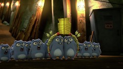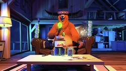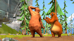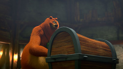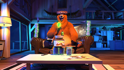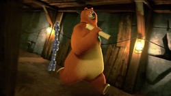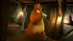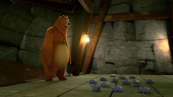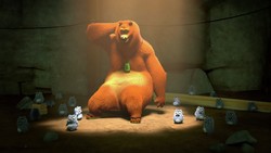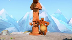 Grizzy und die Lemminge machen einen aufregenden Fund. Unter der Ranger Hütte befindet sich ein weiterer Eingang. / Grizzy findet ein indianisches Zepter. Wenn er dieses schwingt, liegen die Lemminge ihm zu Füßen. / Grizzy schnitzt aus Holz eine Figur