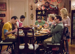 In einem Artikel über eine gemeinsame physikalische Abhandlung von Sheldon und Leonard wird nur Sheldon erwähnt. Als er Leonard das Malheur beichtet, ist der ziemlich enttäuscht. Howard hat den Tod seiner Mutter noch immer nicht überwunden. Es fällt ihm sogar schwer, das übriggebliebene Essen wegzuwerfen, das sie zuletzt gekocht hat. Also lädt er die Clique zu einem gemeinsamen Abendessen ein.