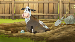 Lieselotte sucht einen Schatz. Die Kuh Lieselotte entdeckt eine etwas merkwürdige Schatzkarte und begibt sich sofort auf Schatzsuche. Selbst der sonst so schläfrige Hofhund kommt mit. Und das bei sengender Hitze. Die Schatzkarte führt die Kuh und ihre Freunde ausgerechnet zum Gemüsebeet der Bäuerin. Jedoch ist das Betreten des Beets für die Tiere strengstens verboten. Aber den Schatz vor Augen setzt sich die Kuh großzügig über das Verbot hinweg